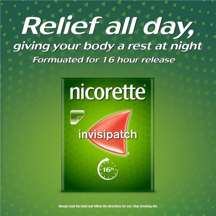 Nicorette 16 ชั่วโมง Invisipatch เป็นผลิตภัณฑ์ช่วยเลิกบุหรี่ โดยช่วยบรรเทาความอยากนิโคตินและอาการขาดนิโคติน