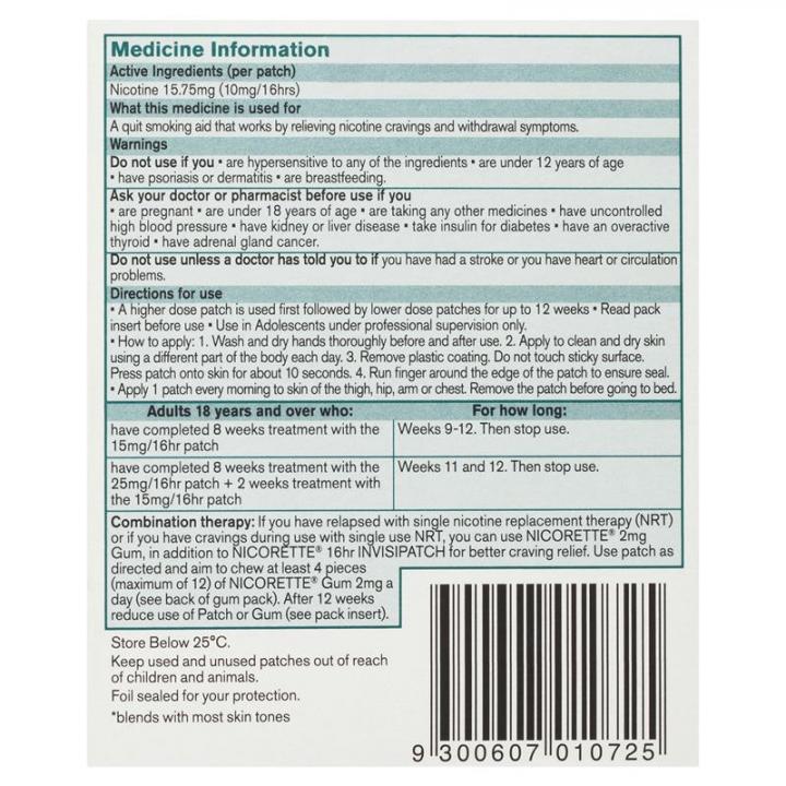 Nicorette Quit Smoking Nicotine 16 Hour Invisipatch 10mg Step3 (7 Patches) แผ่นแปะเลิกบุหรี่ Step3 (7แผ่น)